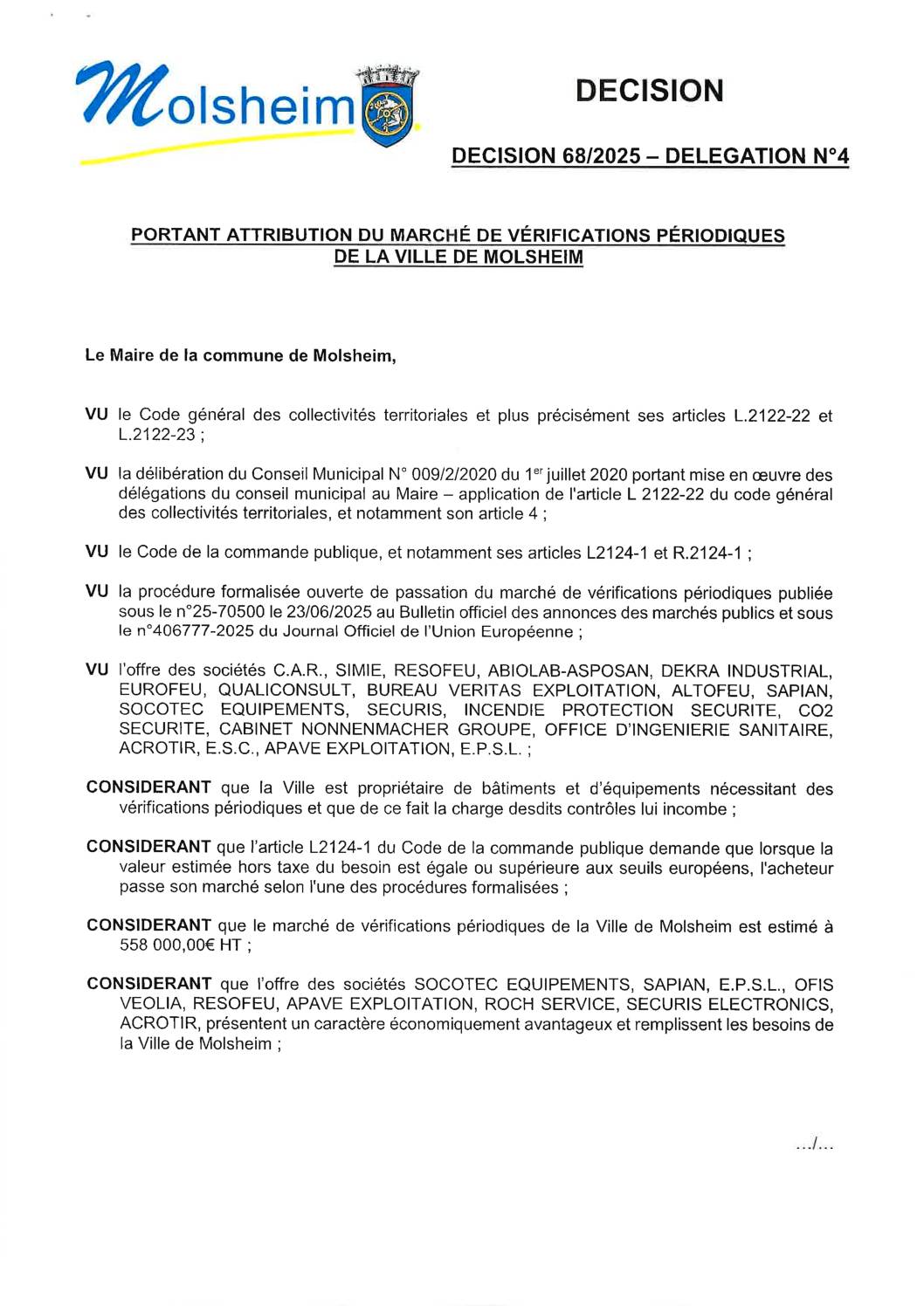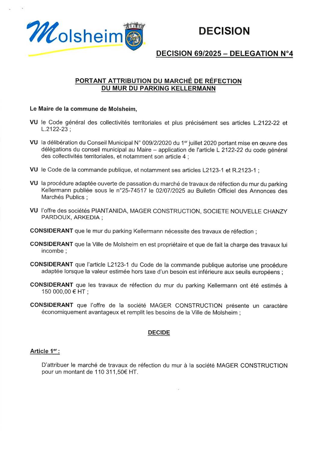 Décision n°59/2025 – Délégation n°4 – Attribution d’un contrat d’assistance juridique en matière de police des constructions et d’urbanisme